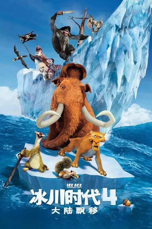 冰川时代4》紧接着《冰川时代3》的结尾,希德(约翰·雷吉扎莫配音)、曼尼(雷·罗马诺配音)、迪亚哥(丹尼斯·利瑞配音)等动物好不容易在这个冰冷彻骨找到一个适合居住的住所,但是,突如其来的大地震,使得他们又不得不继续迁居了——这次,给大家制造了大麻烦的,是那只视松果为毕生所求的小松鼠奎特。它与它的松果的追逐赛这次引发了地球板块分裂,原本相连的地表径自分裂成五大洲七大洋,导致生活在冰川的希德、曼尼和迪亚哥与家人、伙伴们分开,被迫以一块流冰开始了海上漂流,在海上他们会遇到恶劣的自然环境,大海怪以及海盗,这些阻碍会让他们回家的路变得坎坷漫长。