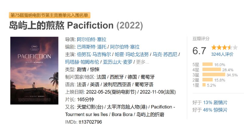 南太平洋的法属岛国上,殖民军官流连夜店消遣寻欢。别以为又是一出散发异国情调,描述殖民者纸醉金迷,无明舔吃最后腐败的电影,场景在怪异的氛围里开展,核试流言渐渐传开,悬疑以另一种节奏伸出魔爪,伺机咬噬同理心与好奇心。塞拉首部戛纳主竞赛电影贯彻《极欲森林》的极端图像经营,取景大溪地,以拿手的长镜头,让观众跟随一名法国高级专员,建构出白日梦式的危险图象──阴谋似现还隐,威胁若断若续,未到最后都不知人心被怎样的险恶包围渗透。