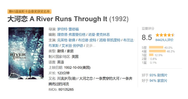 两兄弟经常跟父亲一起钓鱼。潺潺河水,静静午后,成了父子间最难忘的时刻。父亲是一个老牧师,常常在镇上布道,大儿子诺曼(克莱格•谢佛 Craig Sheffer 饰)正是继承了父亲的事业——他擅长讲课,大学毕业后回到家乡传道授业。小儿子保罗(布拉德•皮特 Brad Pitt 饰)却有着迥异的性格——他热爱自由,有一套奇特的钓鱼方法。然而,令人担心的是他迷上了赌博,并因此欠钱遭打。 诺曼结婚后收到一封芝加哥大学的聘用书,他离家前往芝加哥之前,和父亲、弟弟一同在大河边再次享受钓鱼时光。他劝保罗跟他一起离开这里,然而保罗痴迷钓鱼,不愿离去。怎料,这竟是最后的相聚。