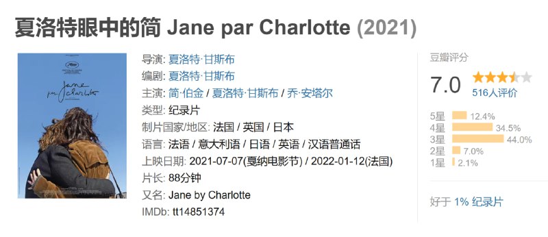 夏洛特眼中的简 Jane par Charlotte (2021)
