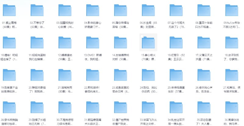 01.爱止青梅(60集)杨欢&何怡婷 02.不等你了(60集)徐扬灏&张婷婷 03.觉醒后我封心锁爱(46集)冯亦&昕昕 04.影帝的掌心娇是豪门千金(63集)董劭辉&斯佳丽 05.赠你荣耀与黑暗(59集)钟嘉玲&张恩浩 06.长生阙(65集)刘昱辰&祖卡尔 07.这个代驾太无敌了2(70集)吴明宇&闫妍 08.重回十年前只为不相逢(62集)秦远&韩佳芯 09.fu人ta专治不服3之将门捉婿(77集)王培延&李柯以 10.糟糕!和姐姐走错了(124集)谢予望&汪海敏 11.姐姐完蛋啦我们走错婚房了(97集)夏宁骏&胡雪艺