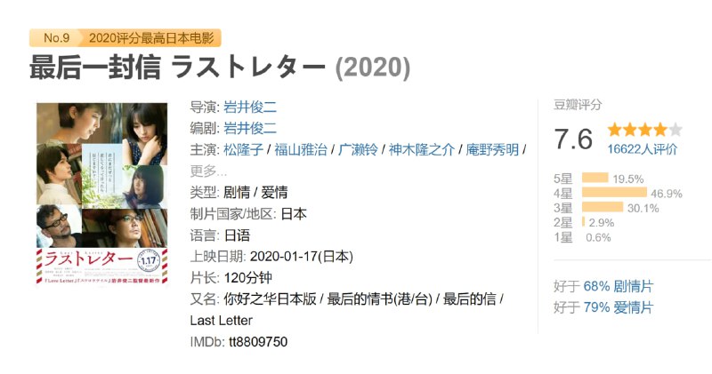 岸边野裕里(松隆子)在姐姐远野未笑的葬礼上,遇到了姐姐的女儿远野鮎美(广濑铃)。无法接受母亲亡故的鮎美,也无法打开母亲留下的最后一封信。裕里参加了要和大家报告姐姐往生的同学会,巧的是,她的初恋对象镜史郎(福山雅治)也来了,两人在一封封书信的联系中串接起三人当年的故事。