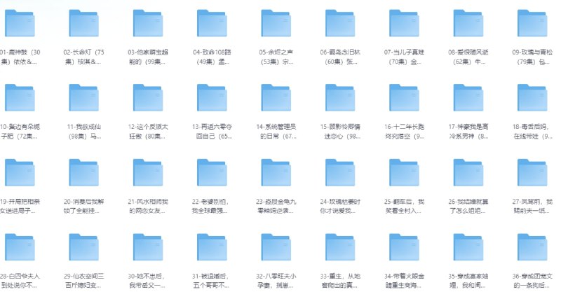 01-鹿神鼓(30集)依依&陈杰评 02-长命灯(75集)桉淇&高张博 03-他家萌宝超能的(99集)吴婷 04-致命108路(49集)孟可&吴佟 05-余烬之声(53集)宗白铧&计美臣 06-羁鸟念旧林(60集)张宇轩&江炘 07-当儿子真难(70集)金倩&李昀喆 08-爱恨随风逝(62集)牛湘鹭&刘锟泓 09-玫瑰与青松(79集)包金妮&王晨鹏 10-鬓边有朵栀子肥(72集)韩栋&王梓莼 11-我欲成仙(98集)马瑞泽&刘因然&青雯