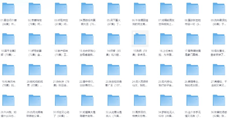 01.霍总闪个婚(86集)仵浩瑄&林潇 02.京婚恃宠(79集)何连飞&烨喵 03.呼吸失控(61集)闵杰&刘蔓莉 04.西游后传真假大圣(70集)动漫短剧 05.月下重火(67集)丁敬一&唐之斐 06.午夜缅因猫我的饲主竟是命中注定(66集)白龙&王之遥 07.戏精前男友空降成我上司(84集)谭熙哲&孙梦涵 08.重获新生她夺回一切(60集)刘昊哲&方梨 09.流年最深处(65集)于龙&李若琪 10.黑千金第2部(70集)冯铭潮&陈昱彤 11.娇宠前妻(72集)金佳遇&张楸梓