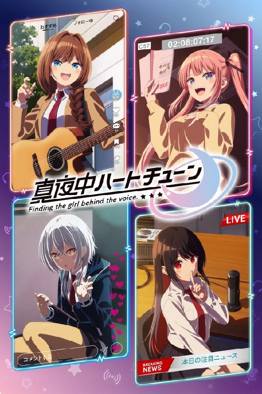 “深夜,独自一人躺在床上,唯有你的声音拯救了我。好想再与你聊一次,我有话想对你说。”高二的山吹有栖一直在寻找一个长相成谜、本名不详,化名为“阿波罗”在线上广播电台主持节目的少女。然而有一天,有栖在并校后的女子高中播音社得到了有关阿波罗的线索。在播音社,有着怀抱“想要从事声音相关工作”的美少女……有4个人!!山吹为了找出真正的阿波罗,立志要为这4个人实现各自的梦想!!阿波罗是谁?4人的梦想会有怎样的结果?