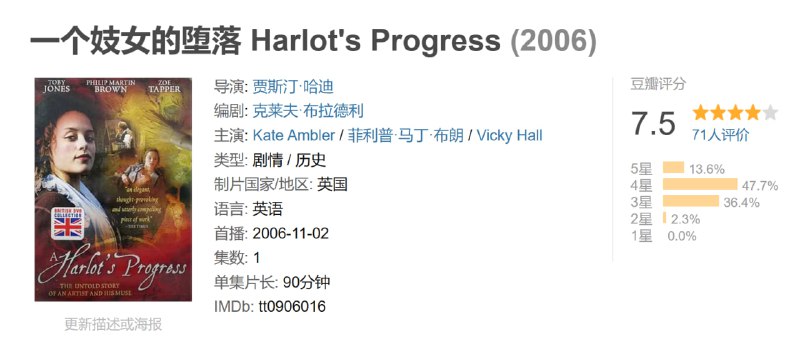 1731年,人道主义艺术家威廉·霍加斯被们闯入内德韦尔母亲妓院的困境所震惊,决定以年轻玛丽·柯林斯为主角,绘制一系列警示性场景。霍加斯的妻子和岳父感到沮丧,但霍加斯对玛丽没有性兴趣,只希望帮她支付他给的摆姿势费用。不幸的是,生活如同艺术的映照,玛丽的堕落紧随画中的堕落。