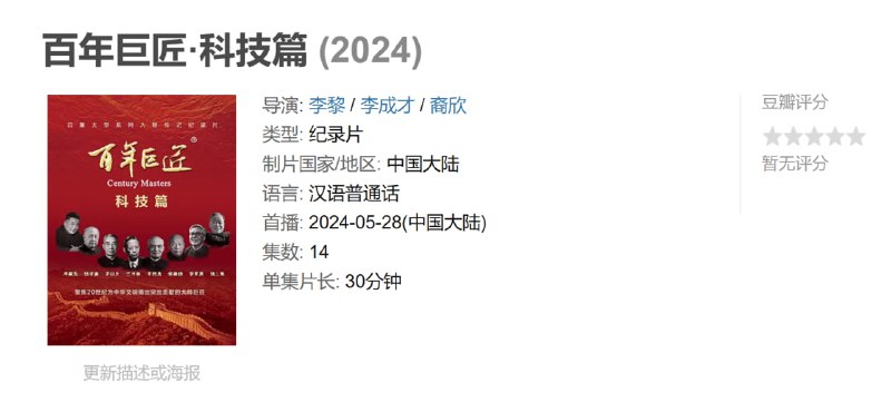 《百年巨匠·科技篇》荣获国家广播电视总局“庆祝建党100周年重点纪录片”、国家广播电视总局“记录新时代”纪录片精品项目扶持,并入选国家广播电视总局“十四五”纪录片重点选题。《百年巨匠·科技篇》聚焦李四光、竺可桢、侯德榜、茅以升、华罗庚、钱学森、钱三强、邓稼先共8位对中国科技事业发展做出杰出贡献的代表人物,细述他们取得的卓越科技成就,以专业的角度、通俗的表达和丰富的视觉语言,讲述巨匠背后的故事,弘扬蕴藏其中的创造智慧和创新精神,展现20世纪中国科技巨匠的风采。