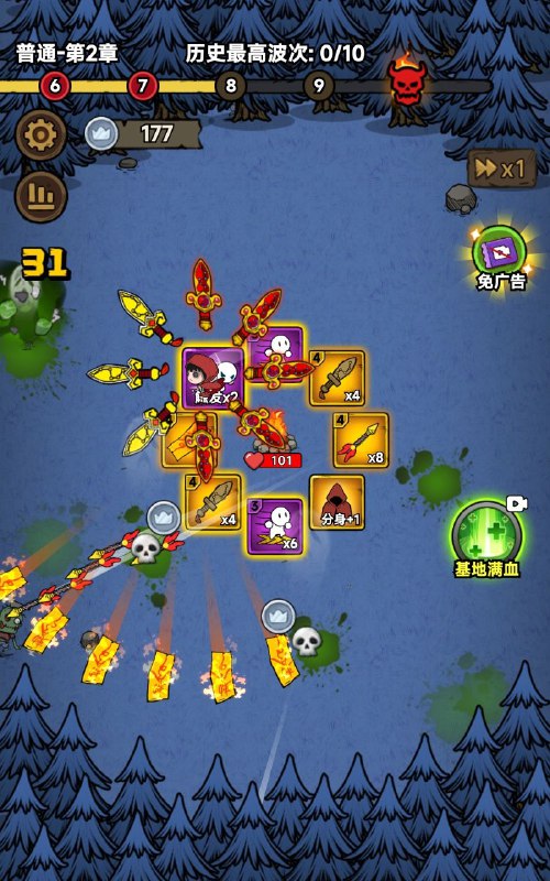 《转转大冒险》汉化免广告版是一款融合中式民俗恐怖与动态塔防玩法的休闲策略手游,玩家通过点击法阵中的武器、生命能量及增益图标,操控角色在环形轨道上旋转奔跑并触发对应效果;游戏结合割草式战斗、Roguelike元素与怪物图鉴收集,面对僵尸狗、僵尸鼠及恐怖Boss等多样敌人,支持武器合成升级与多角色解锁,免广告设计便于流畅体验关卡推进与养成乐趣,适用于喜爱创新塔防与暗黑风格的玩家。