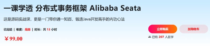 《一课学透 分布式事务框架 Alibaba Seata》是一门深度与广度兼具的系统性源码实战课程。课程目标不仅在于教会使用Seata(AT、TCC、SAGA模式),更在于通过解读其源码,培养学员的架构思维与内功。内容分为四大阶段理论基础(分布式事务、CAP/BASE、2PC/TCC)、Seata原理与入门(官网解读、示例工程跑通)、核心源码深度剖析(自动装配、全局事务扫描与管理、资源管理、数据源代理、服务端启动与协调)以及综合实战(在一个完整的“生单链路”中,依次整合并对比AT、TCC、SAGA三种模式,解决数据一致性、隔离性、并发死锁、空回滚等实际问题)。课程最大特色是 “授人以渔” 与 “内功修炼” ,强调从官网获取信息、结构化与抽象思维在源码阅读中的应用,最终引导学员不仅透彻理解Seata工作机制,更能掌握分布式系统设计的核心思想与问题解决能力。