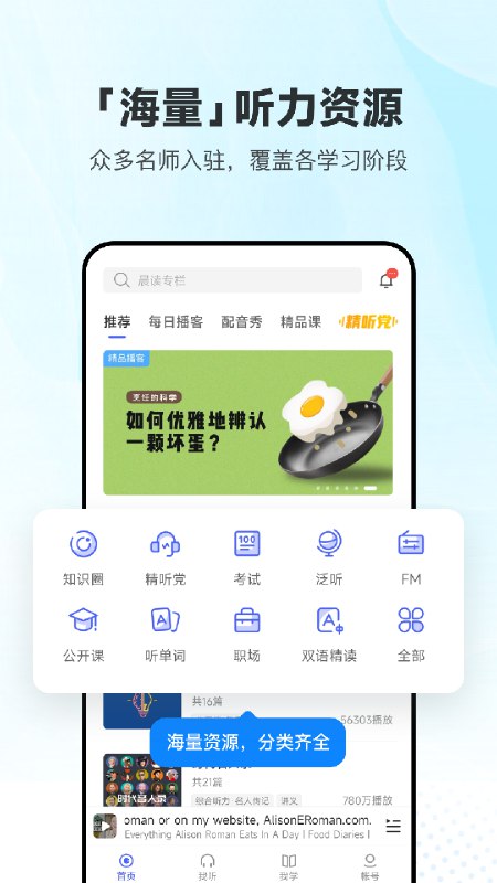 每日英语听力是一款专为英语学习者设计的手机应用,拥有海量听力资源,包括新闻、电影原声、TED演讲等,支持单句循环、变速播放等功能,帮助用户有效提升英语听力水平。此外,应用还提供了实用的英语学习工具和详细的学习进度追踪,助力用户系统、高效地掌握英语听力技能。