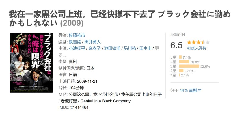 半年前,踌躇满志的青年大根田真男(小池徹平 饰)进入黑井系统公司工作,他曾经中途退学窝在家中啃老,后自学编程并拿到相关国家资格证书,从此立志成为一名优秀的编程师。可是刚进公司的第一天,他便发现这里的气氛怪异非常。组长阿部道大(品川祐 饰)专横跋扈,不可一世,才能有限还经常推诿责任;其他同事要么态度冰冷,要么疲于奔命,要么圆滑处世;公司各项规章制度形同虚设。“莫非我进入了一家没有前途的黑公司?”上得贼船,脱身可就没那么简单了。真男迫不得已成为工作的奴隶,朝着承受的极限痛苦迈进…… 本片根据黑井勇人的同名原作改编。