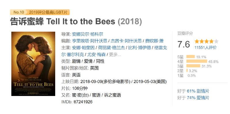 告诉蜜蜂 Tell It to the Bees (2018)