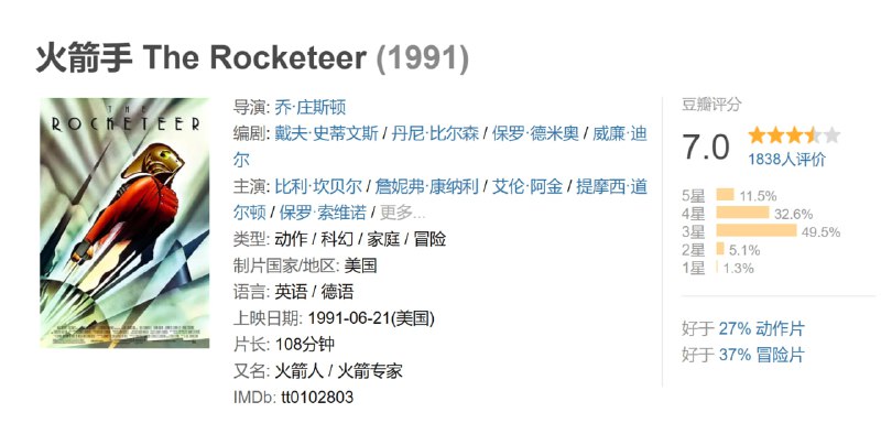 本片是发生在1930年代的好莱坞,有一个军方的秘密武器意外落在一位竞技表演飞行员Cliff Secord手中,他对此一推进器颇感惊奇, 最后他背上了这付怪东西、戴上面具,成了行侠仗义的『火箭人』,然而各方人马都想夺得这项秘密武器,尤其有一位好莱坞影坛的知名男演员 Neville Sinclair ,他其实是纳粹潜伏在好莱坞的情报份子,为了夺得火箭,他还挟持了Cliff的女友Jenny Blake,火箭人Cliff于是展开他的救援行动。