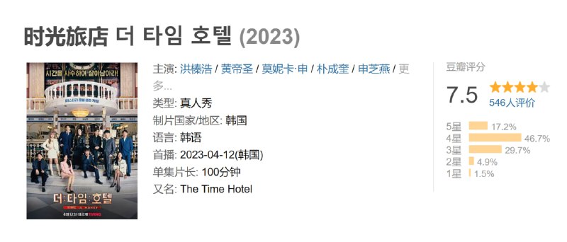 TVING将呈现一个新的生存综艺节目,参与者与时间进行大脑斗争。 TVING12月5日宣布,将在明年上半年推出总奖金3亿韩元的综艺节目《时光旅店》。 “时间酒店”是一个节目,其中 10 位客人足智多谋地竞争作为酒店的最后一位客人生存,在那里他们可以用时间而不是金钱购买所有东西,并在时间用完后立即退房。 最终获胜者成功管理时间直到最后,将获得高达3亿韩元的奖金。 10 位嘉宾包括第一代职业游戏玩家、生存游戏节目《天才游戏规则》获胜者洪镇浩、喜剧演员黄在成、歌手约翰·朴、舞蹈家莫妮卡、以经济 YouTube 频道而闻名的 Joo Eon-kyu PD、Netflix 综艺节目《单身地狱》的演员申智妍、播音员金南熙、 IQ 156的Mensa成员,演员Kim Hyun-kyu,说唱歌手Layone和女子组合Cignature成员Chloe,他是密歇根大学的学生。