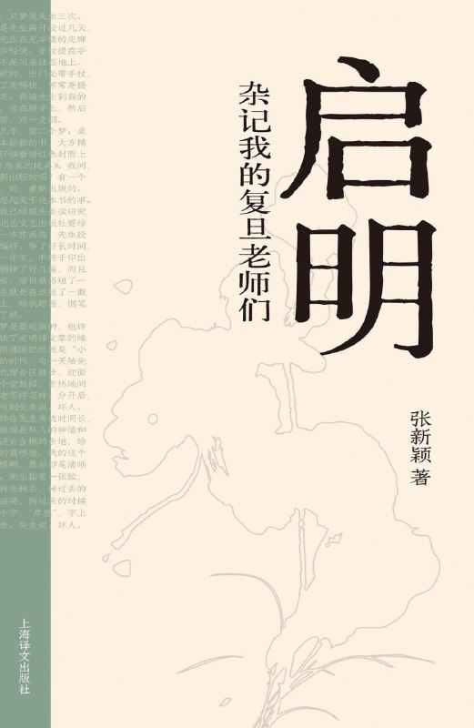 《启明》是张新颖三十年间对六位师长——贾植芳、章培恒、夏仲翼、骆玉明、陈思和、李振声——的持续记录,散为二十二篇印象记,聚合起来则是时间累积的生命契机与光影声色。书中不仅描绘师长们的行迹与心迹,更烛现知识分子个人的文化情怀与现实关切。