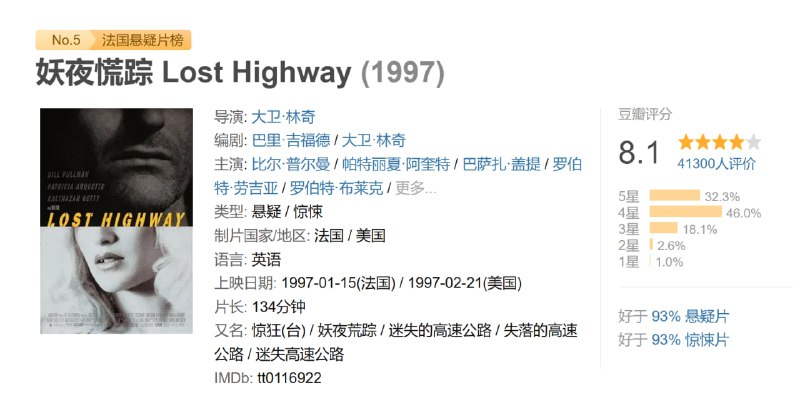 这被认为是大卫•林奇拍得最混乱的一部电影。爵士乐手(比尔•普尔曼 Bill Pullman 饰)和他的妻子(帕特丽夏•阿奎特 Patricia Arquette 饰)一天早上收到了一盒录影带,他们发现里面的内容竟然是他们日常生活的点点滴滴。从此,他们每天早上都会收到这样的录影带。这天,乐手发现录影带里的内容竟然是他杀死了妻子!当他冲进卧室时,发现妻子果然死在了床上。 警察将他带走了。一晚过后,原本在监房里坐着的乐手变成一个年轻的维修工,莫明其妙的警察只好将他放了。维修工因一手出色的修车技术深得黑社会老大器重,这时,他发现老大的女人竟然和他的妻子长得一摸一样,只是头发颜色不一样。老大的女人主动勾引了维修工,两人携款潜逃。当他们来到荒漠公路时,维修工与女子疯狂做爱,之后他又变回了乐手……