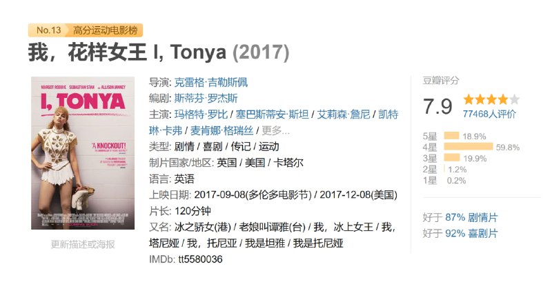 托尼亚(玛歌特·罗比 Margot Robbie 饰)成长在一个破碎的家庭之中,和母亲(阿丽森·詹尼 Allison Janney 饰)过着相依为命的日子。托尼亚的母亲是一个冷若冰霜而又独断专行的女人,她在年仅3岁的托尼亚身上看到了她成为一名花滑运动员的潜力,就这样,小小的女孩被送往了由戴安(朱丽安妮·尼科尔森 Julianne Nicholson 饰)执教的花滑队里,开始了训练。 托尼亚的全部童年几乎都是在冰上度过的,直到有一天她在溜冰场遇见了名为杰夫(塞巴斯蒂安·斯坦 Sebastian Stan 饰)的男子,两人很快就坠入了爱河。杰夫改变了托尼亚的人生,却也成为了她的灾难,从此托尼亚要面对的,除了日益艰巨的训练外,还有来自杰夫的拳脚。在一场比赛中,托尼亚完成了冰上三圈半的跳跃动作,成为了美国第一个完成了这个动作的运动员,托尼亚因此名声大噪。