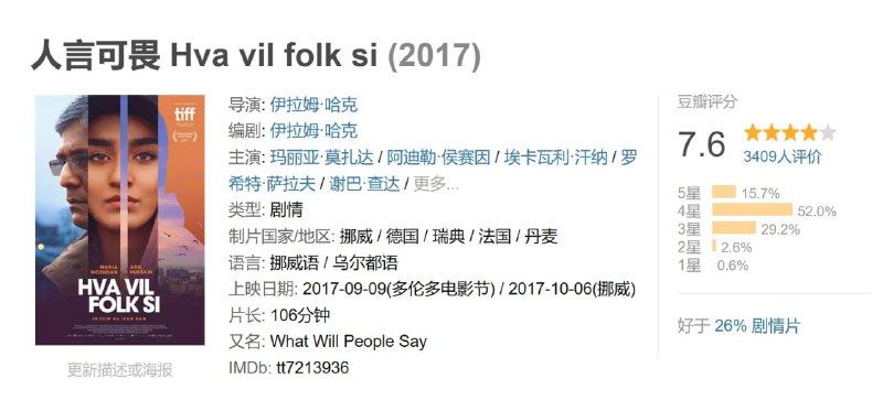 故事讲述16岁的巴基斯坦族少女(玛丽亚·莫兹达饰)一家住在奥斯陆,然而家人却遵守着严格的巴基斯坦传统,当她和白人男友的暧昧关系被传统的父亲发现后,父亲立马将她送往巴基斯坦的亲戚家接受教育。