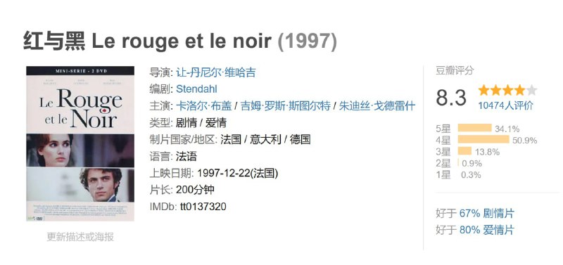 故事发生在法国一个偏僻的小镇上,我们的主人公于连(吉姆·罗斯·斯图尔特 Kim Rossi Stuart 饰)就出生在那里。身处乱世,于连从小就有远大的理想,虽然出生卑微,但他仍怀有着挤进上流社会的幻想,并为此不断的做着努力。 19岁之时,于连成为了市长雷纳尔(贝尔纳·维尔莱 Bernard Verley 饰)家的家庭教师并和市长夫人路易斯(卡洛尔·布盖 Carole Bouquet 饰)之间产生了暧昧关系,东窗事发后,于连被迫离开了小城。几经波折,于连成为了拉莫尔侯爵(克劳德·里奇 Claude Rich 饰)的私人秘书,侯爵的女儿马蒂尔德(朱迪丝·哥德雷科 Judith Godrèche 饰)爱上了于连。从马蒂尔德身上,于连看到了飞黄腾达的希望,然而,路易斯的一封信揭露了于连灰暗的过去,并将他的希望彻底打碎。