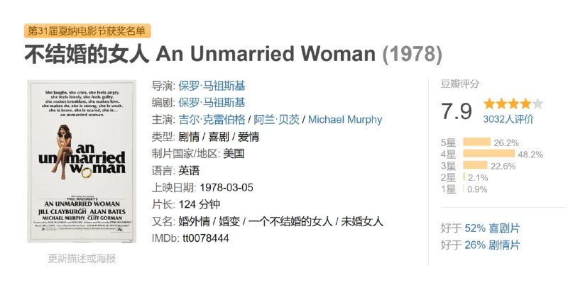 本片描述一名少妇(吉尔·克莱布格饰)因为丈夫(艾伦·贝斯饰)移情别恋而被抛弃,起初她受不住这个精神打击,但后来却逐渐学会了独立自主的生活,成为掌握自己命运的独立新女性