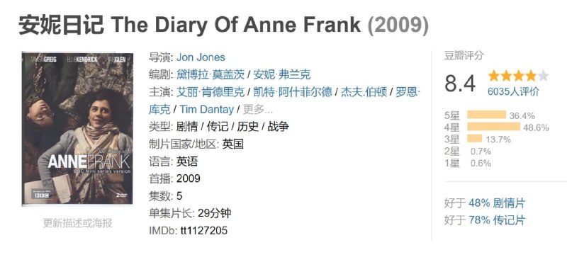 影片讲述花季少女安妮·弗兰克(艾丽·肯德里克 Ellie Kendrick饰)为躲避纳粹和家人一起藏匿于密室的生活记录。两年充满恐惧和迷惘的密室生活,让写日记成为了安妮生活中最大的乐趣。她认真的记录着这段辛酸岁月的种种苦痛和弥足珍贵的欢笑快乐,自由的只有她的思想。可不幸还是在两年后降临在了这个家庭,他们被送往集中营。坚强乐观的安妮和其他家人朋友都不幸遇难,只有她的父亲幸运逃生。战争结束后,安妮的父亲决定完成女儿的遗愿——将这本日记出版问世。安妮最后一篇日记写于1944年8月1日,《安妮日记》记录下了在纳粹统治下,人民苦难的战时生活,成为仅次于圣经的一本最畅销的读物。